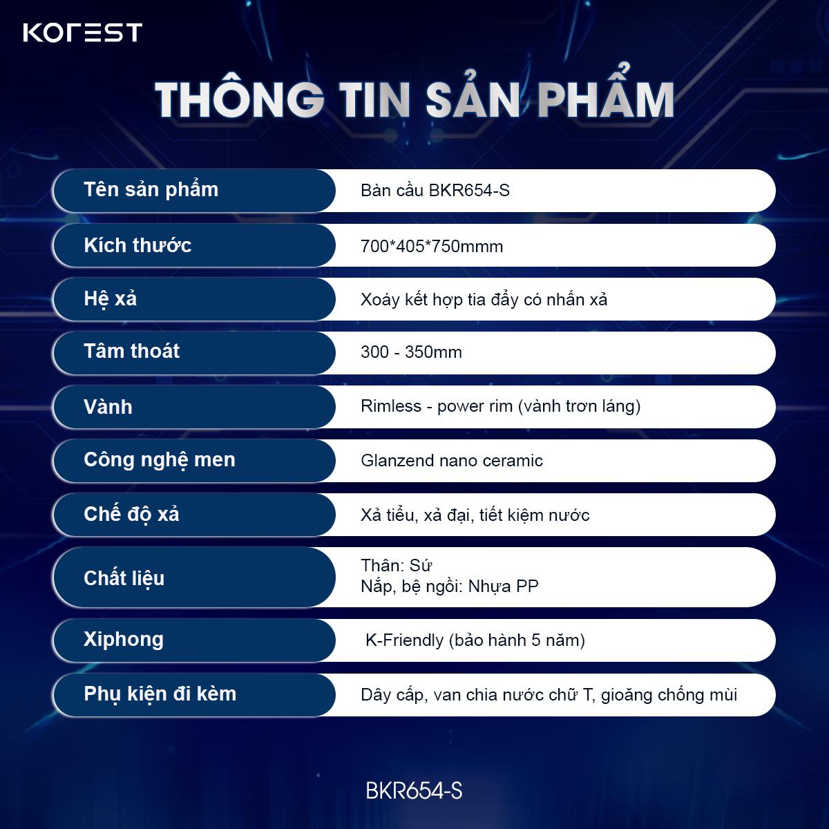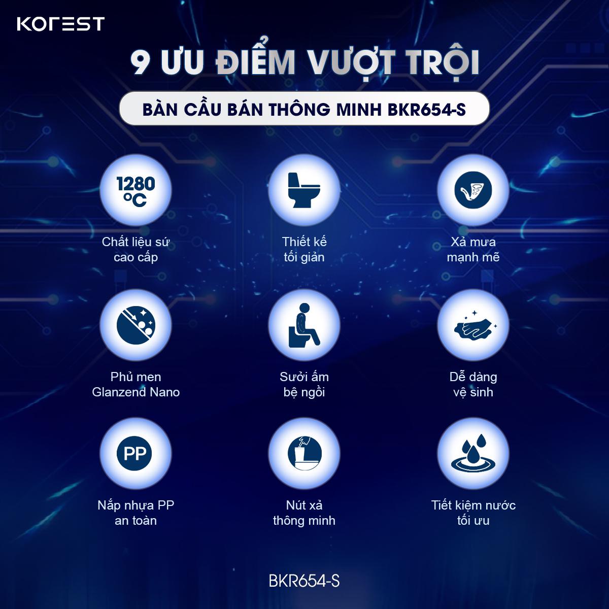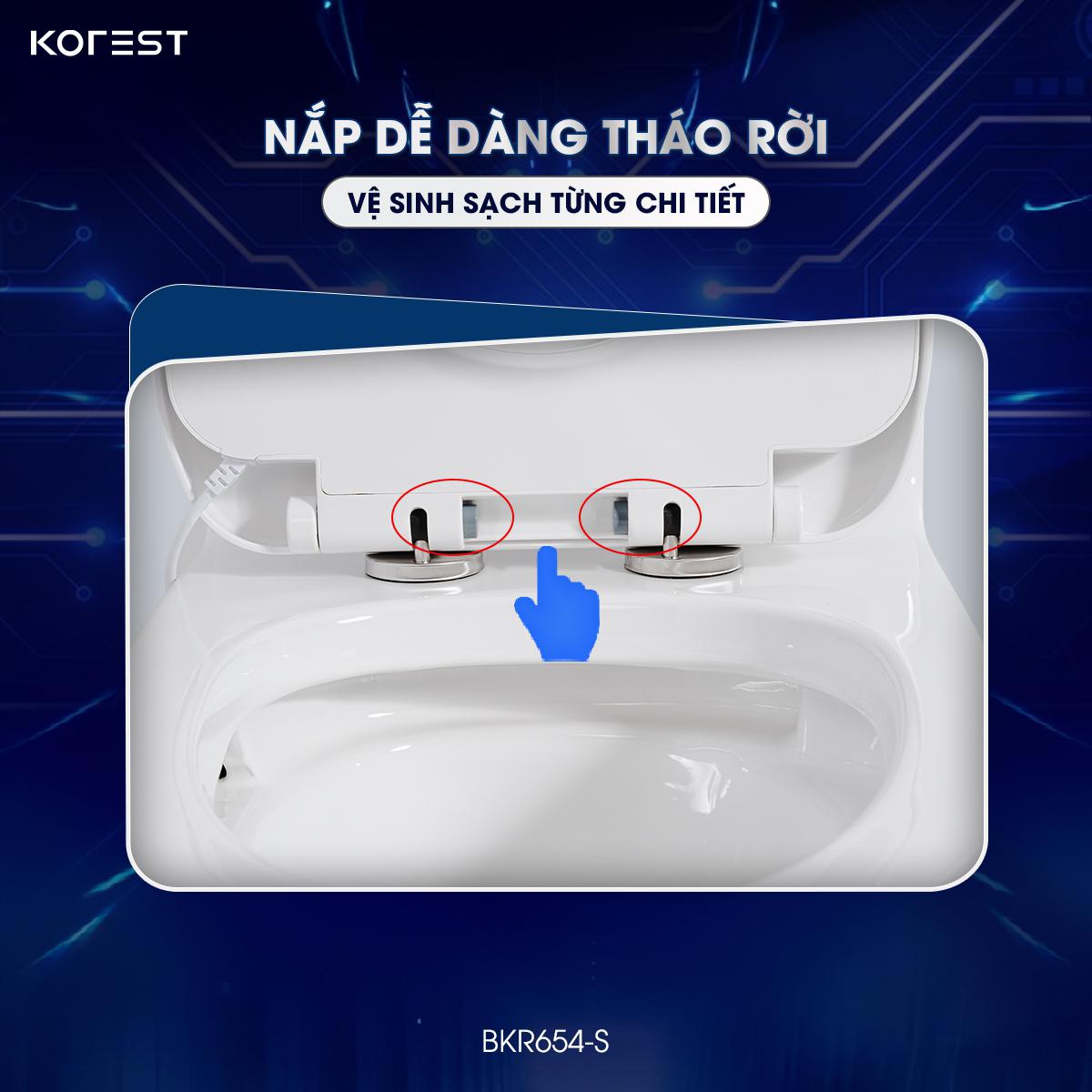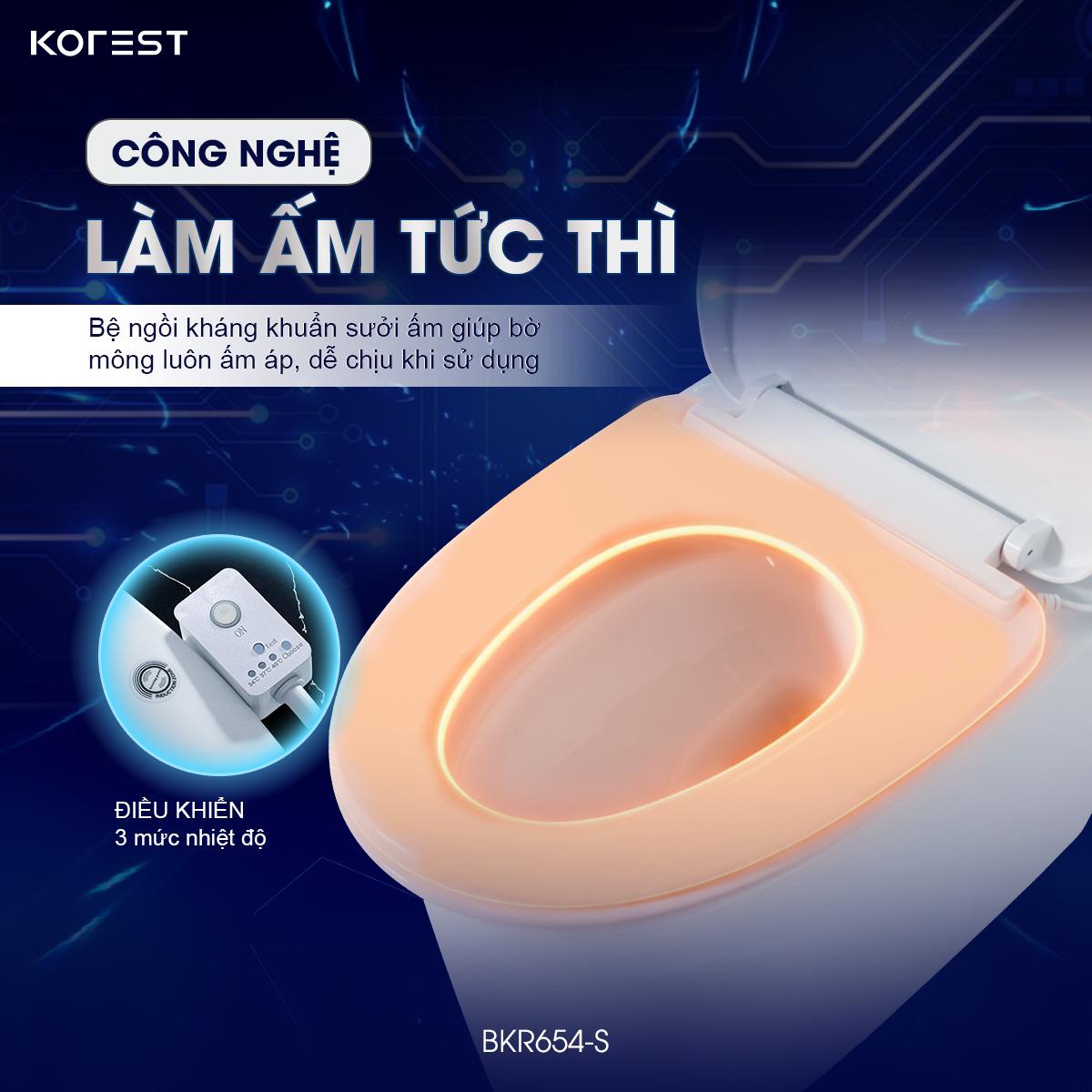 Không cần chạm tay, không cần thao tác rườm rà – KOREST BKR654-S mang đến trải nghiệm vệ sinh hiện đại với nút nhấn xả từ xa thông minh tự động xả, giúp nâng tầm tiện nghi và đảm bảo vệ sinh tối đa. Kết hợp cùng tính năng làm ấm bệ ngồi linh hoạt theo nhiệt độ môi trường, sản phẩm mang lại cảm giác dễ chịu, êm ái ngay từ lần sử dụng đầu tiên. Thiết kế sang trọng, công nghệ thân thiện – BKR654-S tinh thế trong từng chi tiết, tối ưu trong công năng mang đến những giá trị sống đích thực cho người dùng. Đây là lựa chọn lý tưởng cho không gian sống đẳng cấp, nơi từng chi tiết đều phục vụ sự thoải mái và an toàn của bạn.