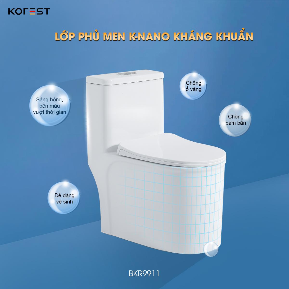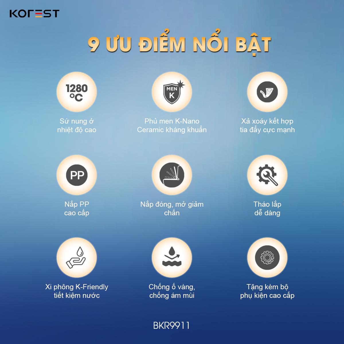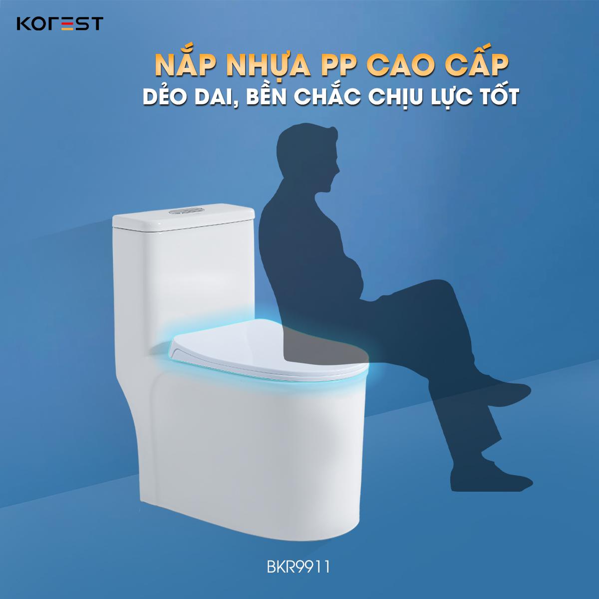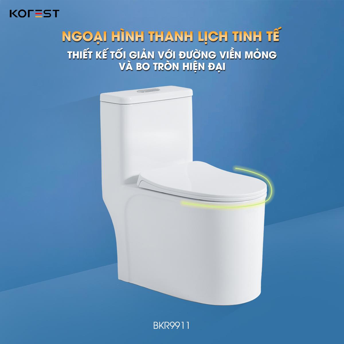 KOREST BKR9911 gây ấn tượng với thiết kế liền khối mượt mà, không góc khuất – mang đến vẻ đẹp liền mạch, tinh giản và dễ dàng vệ sinh. Các đường nét uốn cong mềm mại tạo nên một tổng thể hài hòa, hiện đại, phù hợp với nhiều phong cách không gian. Không chỉ tối ưu về thẩm mỹ, BKR9911 còn giúp hạn chế tích tụ bụi bẩn, giữ cho phòng tắm luôn sạch sẽ và sáng bóng theo thời gian.
