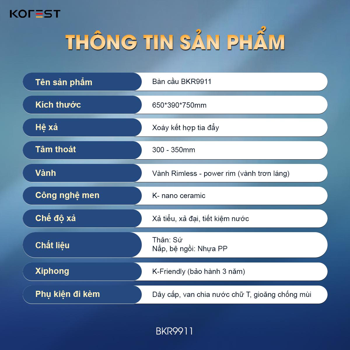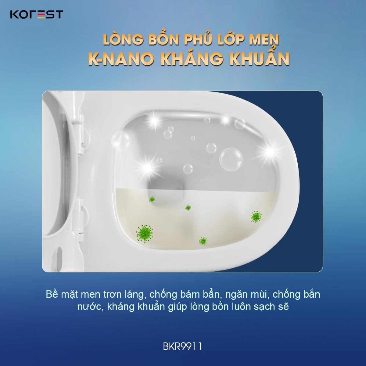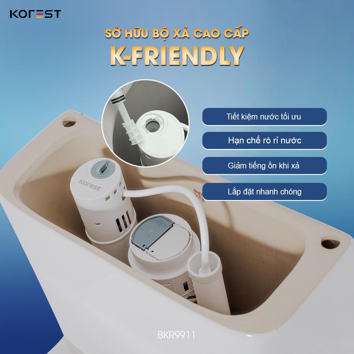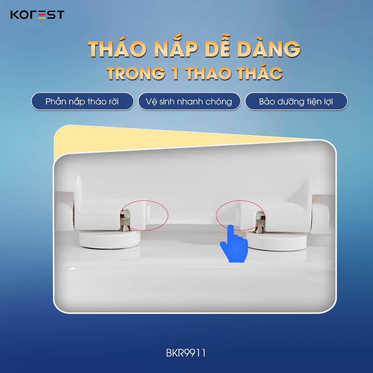 KOREST BKR9911 gây ấn tượng với thiết kế liền khối mượt mà, không góc khuất – mang đến vẻ đẹp liền mạch, tinh giản và dễ dàng vệ sinh. Các đường nét uốn cong mềm mại tạo nên một tổng thể hài hòa, hiện đại, phù hợp với nhiều phong cách không gian. Không chỉ tối ưu về thẩm mỹ, BKR9911 còn giúp hạn chế tích tụ bụi bẩn, giữ cho phòng tắm luôn sạch sẽ và sáng bóng theo thời gian.