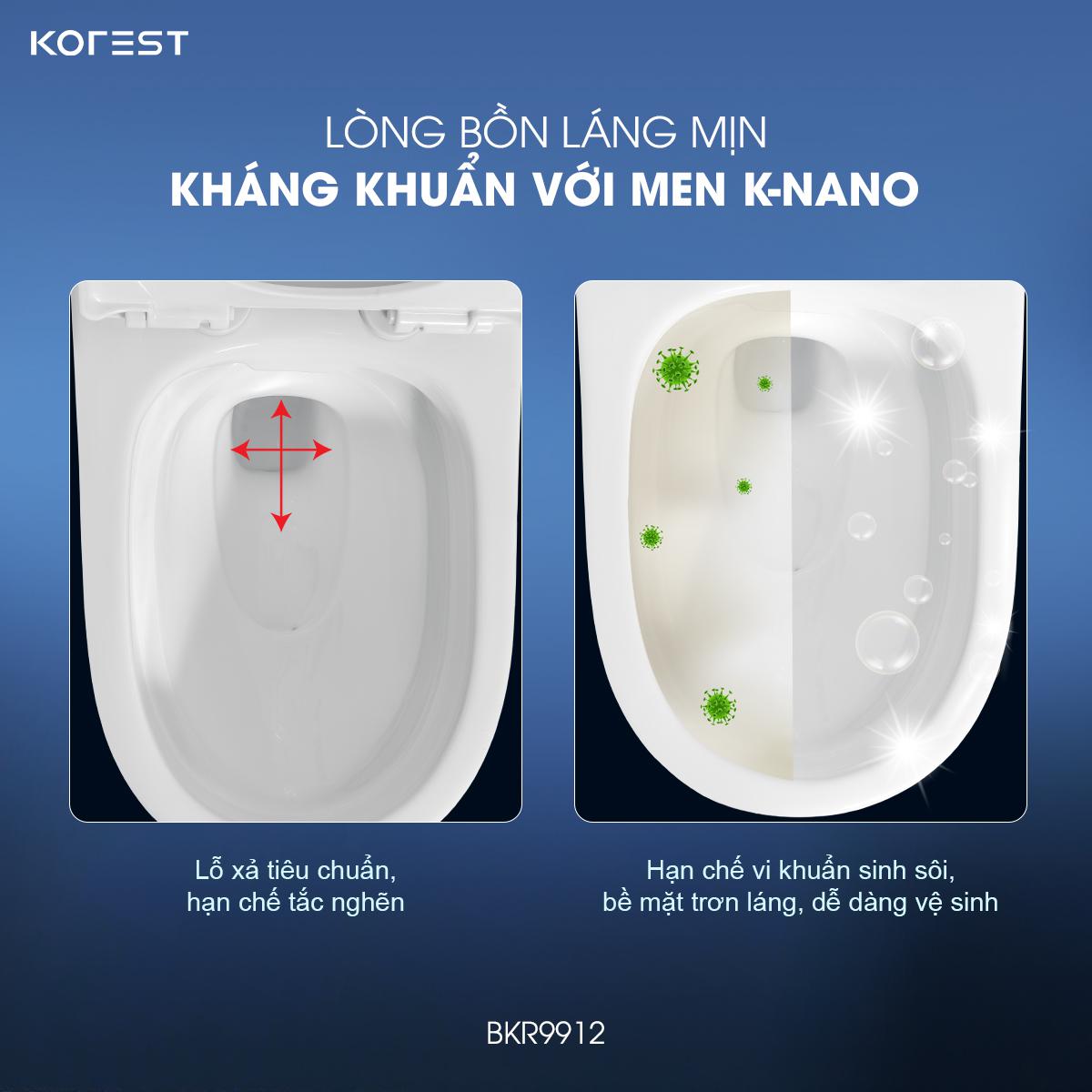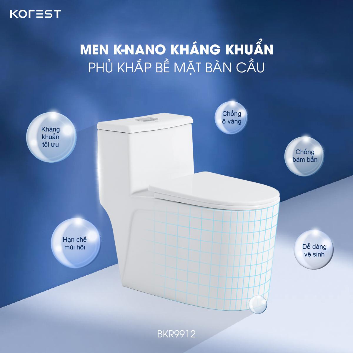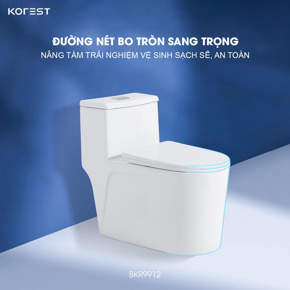 Lấy cảm hứng từ triết lý thiết kế mềm mại và tối giản, bồn cầu 1 khối KOREST BKR9912 nổi bật với các đường bo tròn tinh tế, tạo cảm giác nhẹ nhàng, thanh thoát cho tổng thể không gian. Không chỉ thu hút bởi vẻ ngoài hiện đại, lớp phủ men K-nano còn giúp hạn chế bám bụi, dễ dàng vệ sinh, duy trì vẻ sạch sẽ và sang trọng mỗi ngày. BKR9912 là lựa chọn lý tưởng cho những ai yêu thích sự tối giản nhưng vẫn muốn tạo điểm nhấn ấn tượng cho phòng tắm.