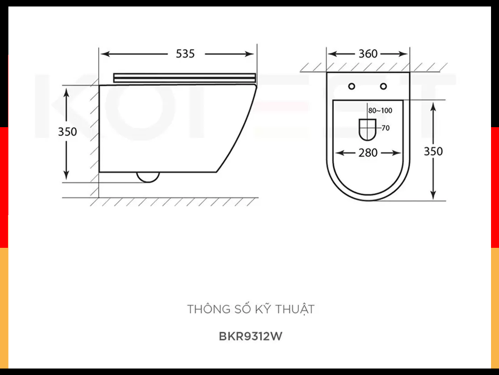 Bàn cầu treo tường BKR9312W