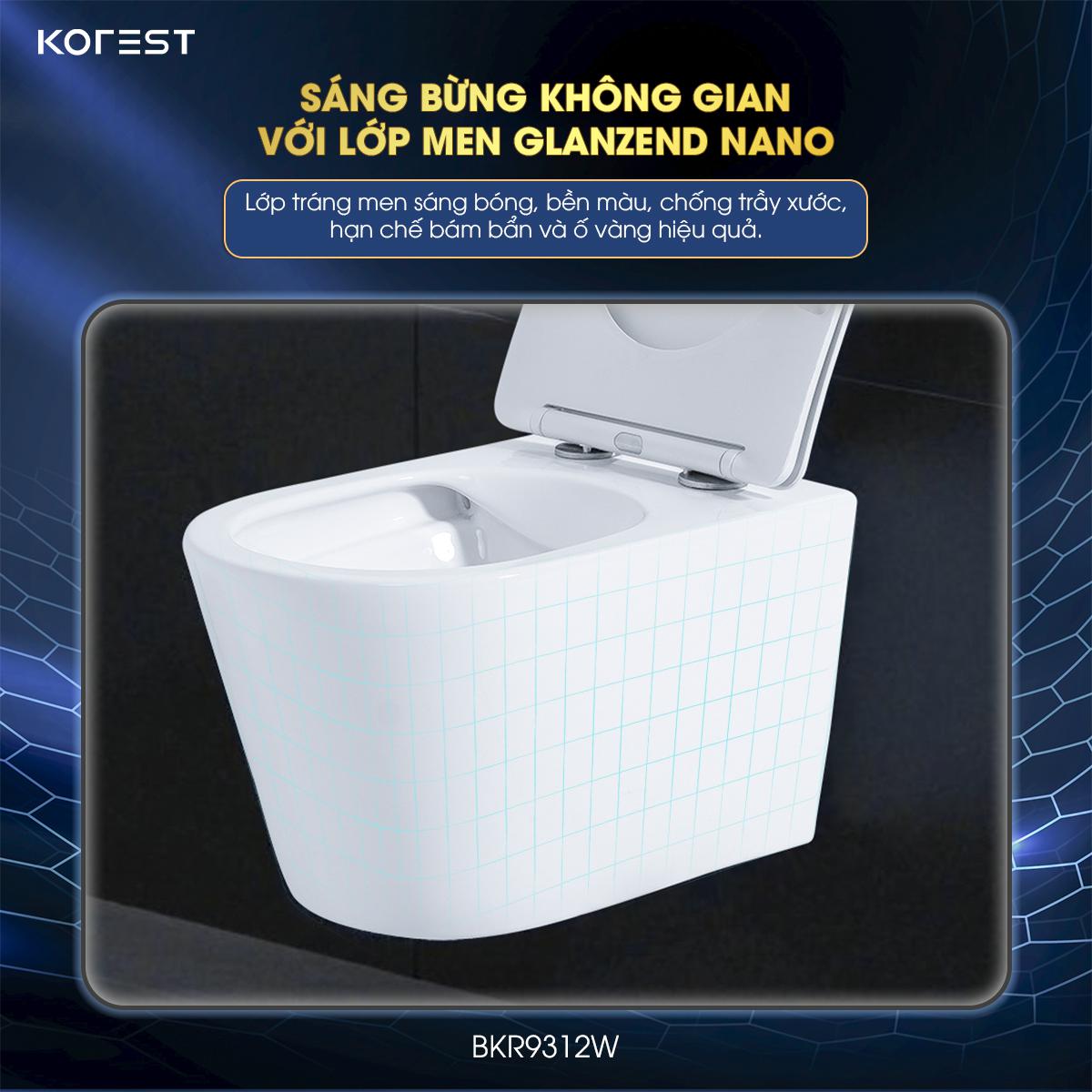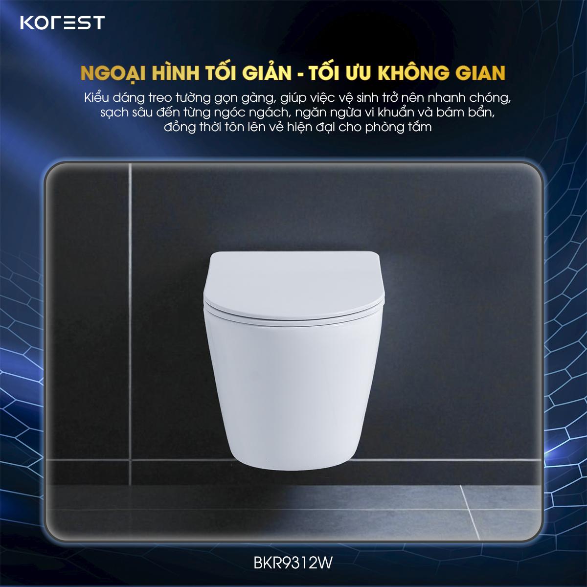 Bàn cầu treo tường KOREST BKR9312W ghi điểm tuyệt đối với khả năng vệ sinh vượt trội, nhờ thiết kế treo tường không chạm sàn, mọi ngóc ngách dưới bồn cầu đều dễ dàng lau chùi, không còn chỗ cho vi khuẩn, bụi bẩn tích tụ. Bề mặt sứ phủ men kháng khuẩn cao cấp càng nâng cao hiệu quả giữ gìn vệ sinh. BKR9312W chính là lựa chọn hoàn hảo cho những ai đặt sự sạch sẽ và tinh gọn lên hàng đầu trong thiết kế phòng tắm hiện đại.
