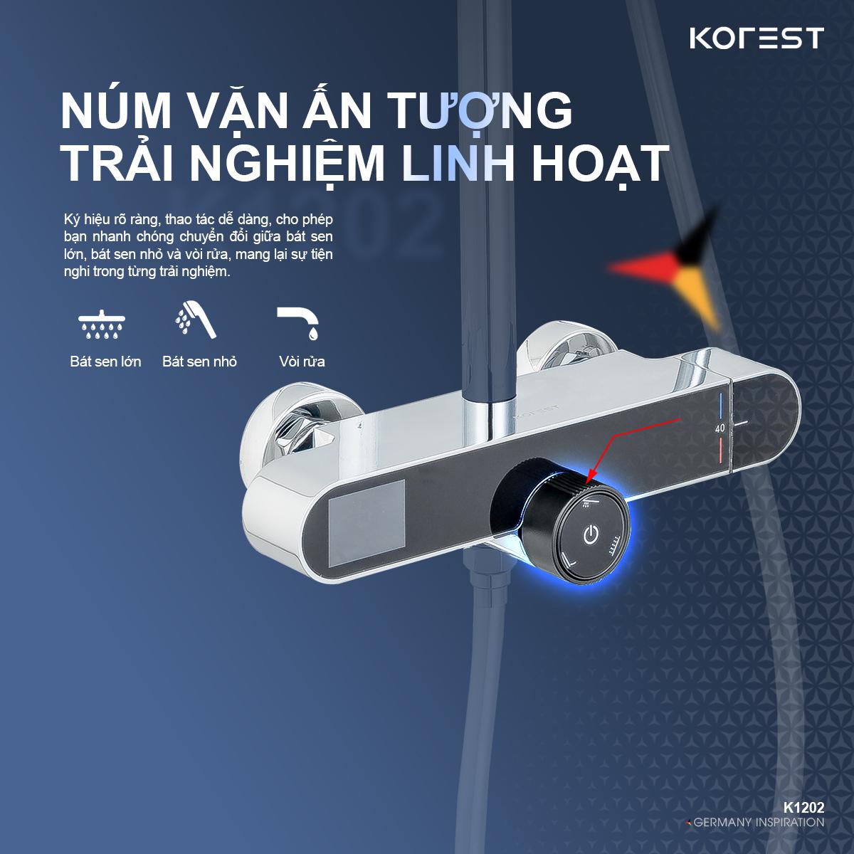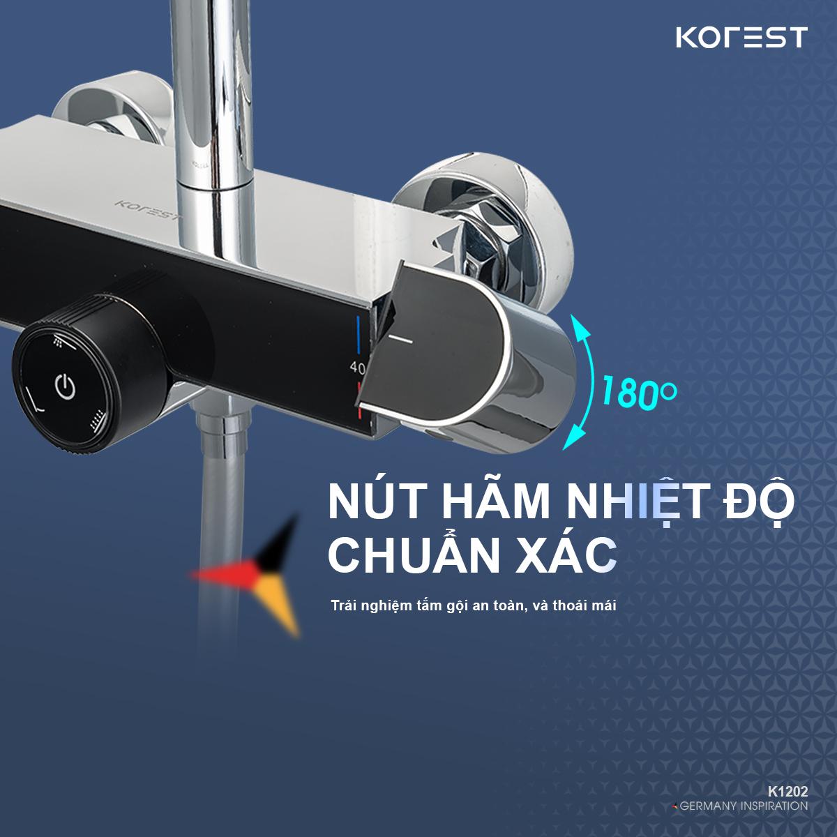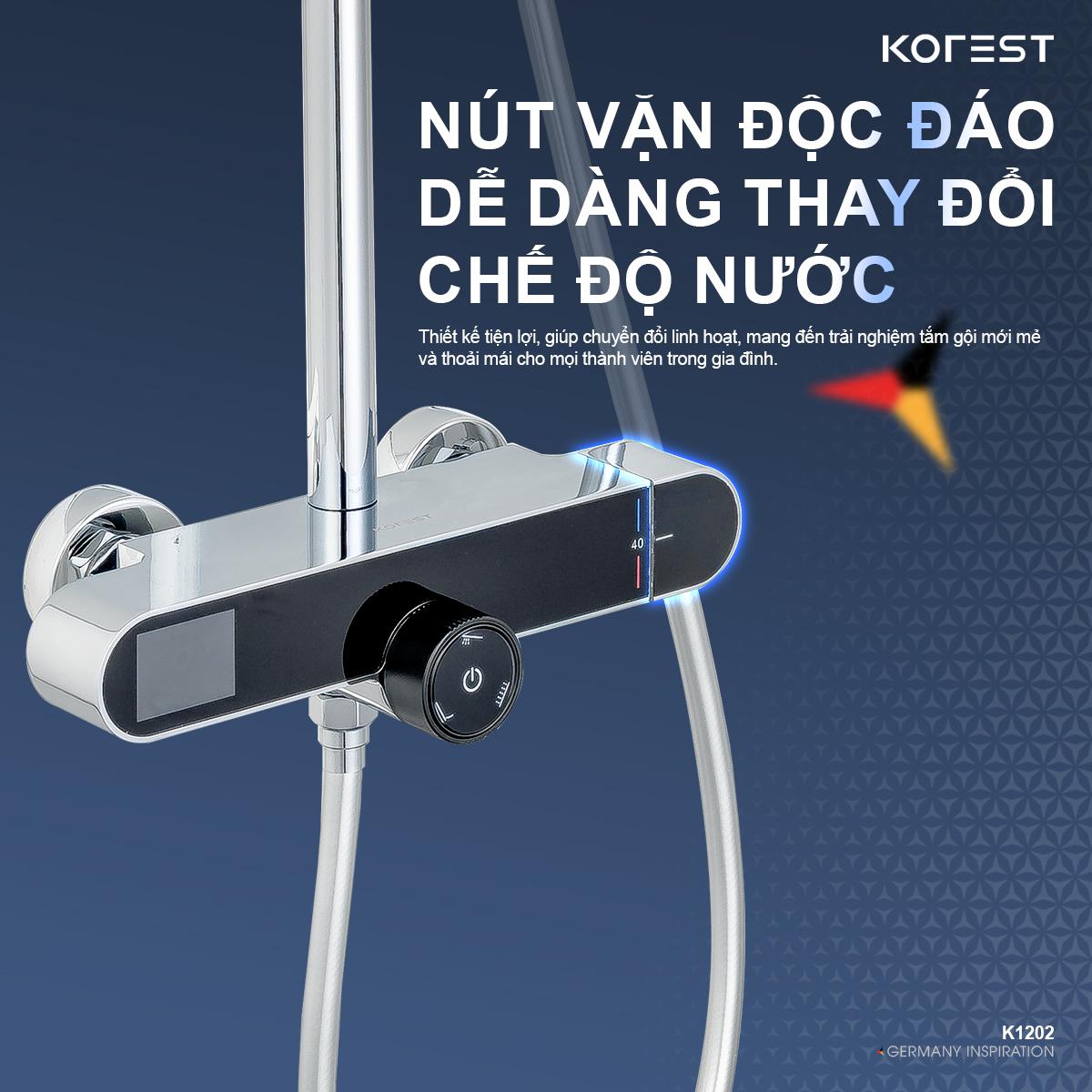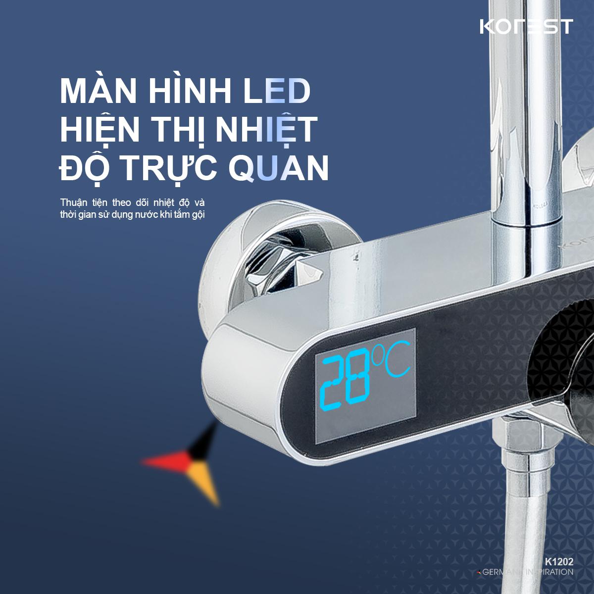 Khi mùa đông cận kề, đã đến lúc nâng cấp phòng tắm của bạn với sen cây nhiệt độ thông minh K1202 từ KOREST – giải pháp hoàn hảo mang đến trải nghiệm tắm an toàn, tiện nghi và đầy ấm áp. Sản phẩm được trang bị nút hãm nhiệt độ giới hạn 38°C giúp duy trì nguồn nước ổn định, ấm áp trong suốt quá trình sử dụng, kết hợp cùng màn hình LED hiển thị nhiệt độ và thời gian để người dùng dễ dàng kiểm soát, an tâm hơn mỗi lần tắm.