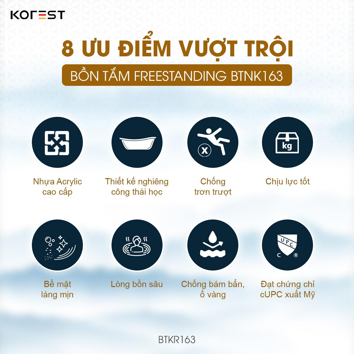 Khoảnh khắc thả mình trong làn nước ấm, hương tinh dầu dịu nhẹ lan tỏa, âm nhạc khẽ ngân vang – mọi giác quan được đánh thức trong không gian thư giãn tuyệt đối. Đó không chỉ là phút giây nghỉ ngơi mà còn là liệu pháp phục hồi năng lượng, tái tạo sức sống cho tâm hồn và cơ thể. Và chính Bồn tắm Freestanding BTNK163 sẽ giúp bạn biến những khoảnh khắc ấy thành trải nghiệm trọn vẹn ngay tại nhà.