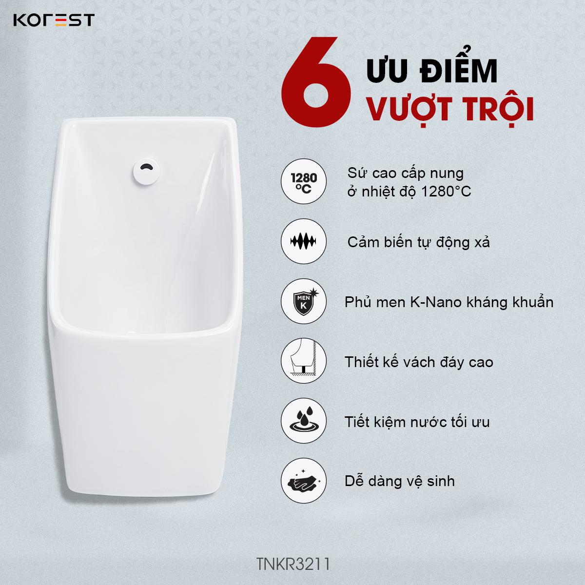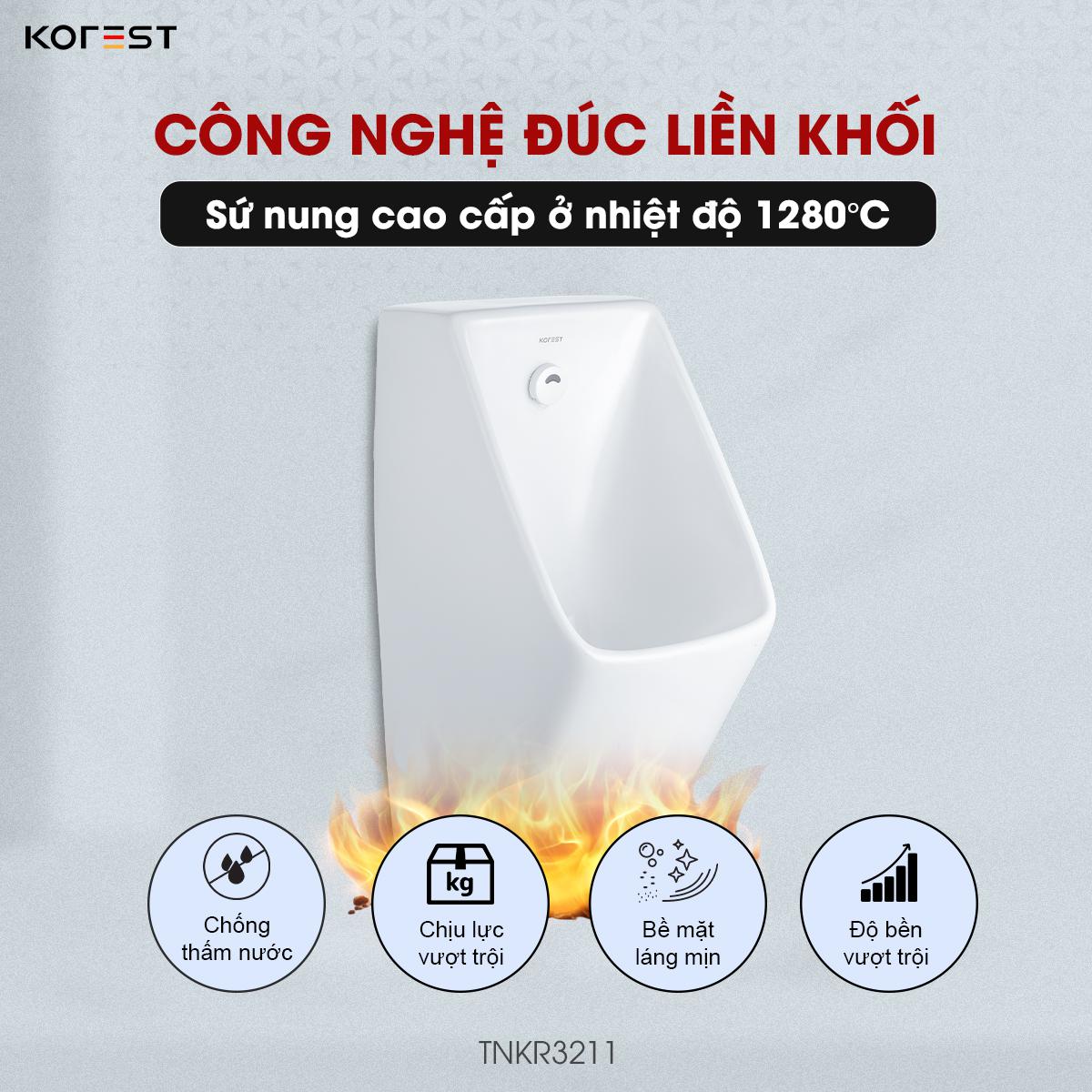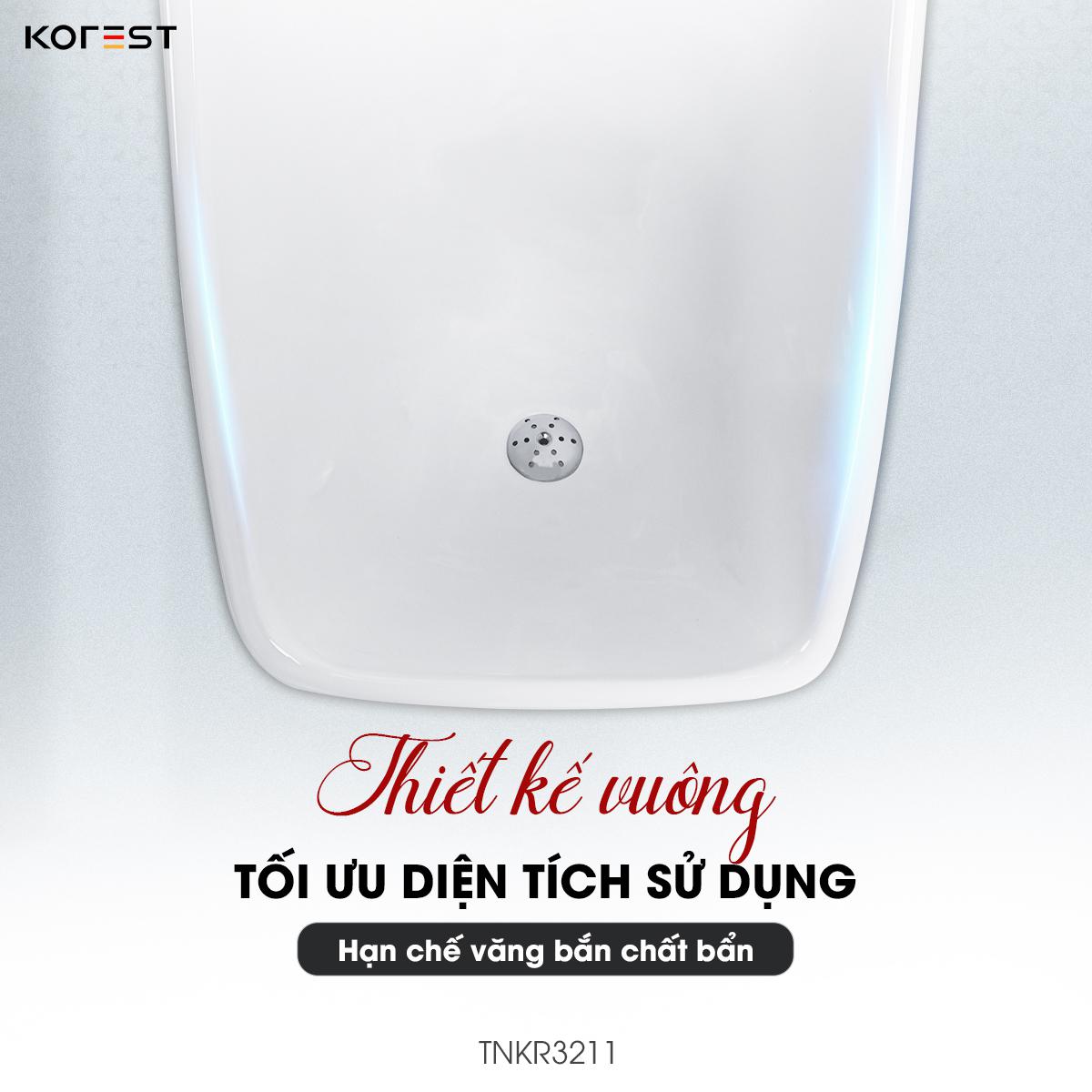 Kế thừa tiêu chuẩn của dòng sản phẩm cao cấp KOREST, TNKR3211 được chế tác từ sứ nguyên khối chất lượng cao, nung ở 1280°C cho độ bền vượt trội cùng khả năng chống thấm, chống nứt, chống trầy xước và chống bám bẩn ưu việt. Bề mặt phủ men K-Nano độc quyền siêu mịn – sáng bóng – kháng khuẩn mạnh mẽ, không chỉ ngăn ố vàng và hạn chế cặn bẩn bám dính mà còn giảm thiểu việc sử dụng hóa chất tẩy rửa, an toàn cho sức khỏe và thân thiện với môi trường. Nhờ đó, sản phẩm luôn giữ được vẻ trắng sạch – sáng mới – bền đẹp theo thời gian.