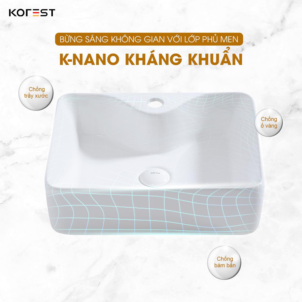 Được chế tác từ sứ cao cấp nung ở nhiệt độ 1280°C, sản phẩm sở hữu độ bền ấn tượng, hạn chế tối đa tình trạng nứt vỡ, bong tróc. Lớp men K-Nano Ceramic hiện đại giúp kháng khuẩn, chống ố vàng, chống bám bẩn, đồng thời giữ bề mặt luôn sáng bóng, bền màu với thời gian.