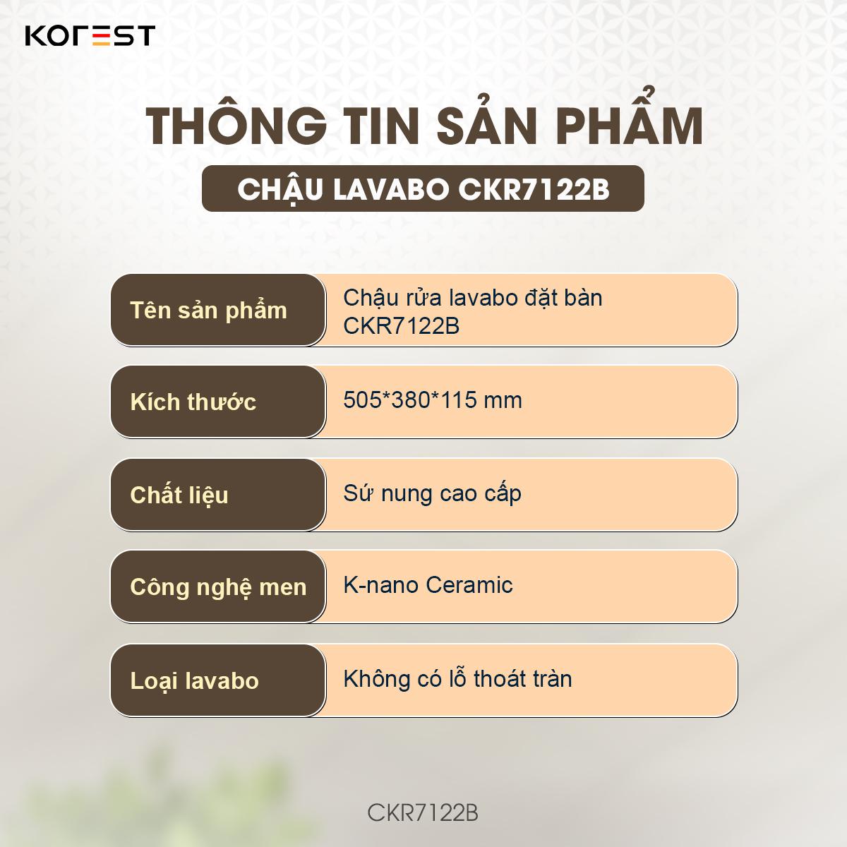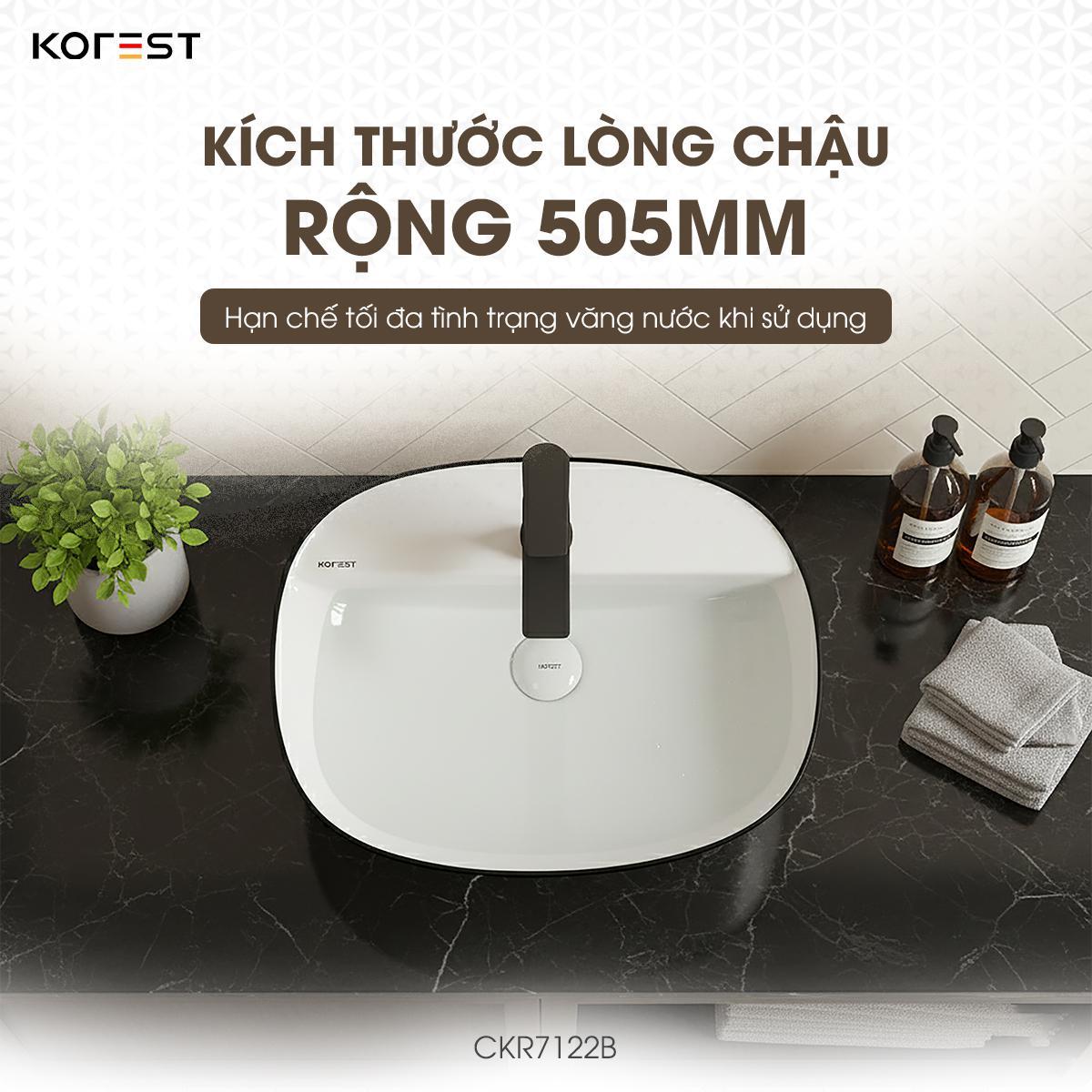 Với kích thước 505 × 380 × 115 mm, CKR7122B không chỉ đáp ứng trọn vẹn nhu cầu sinh hoạt mà còn góp phần tôn vinh thẩm mỹ, biến phòng tắm trở thành một không gian đậm chất nghệ thuật.