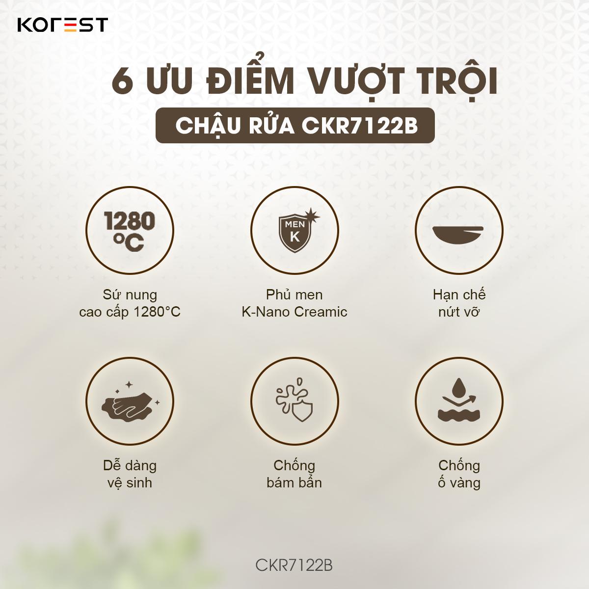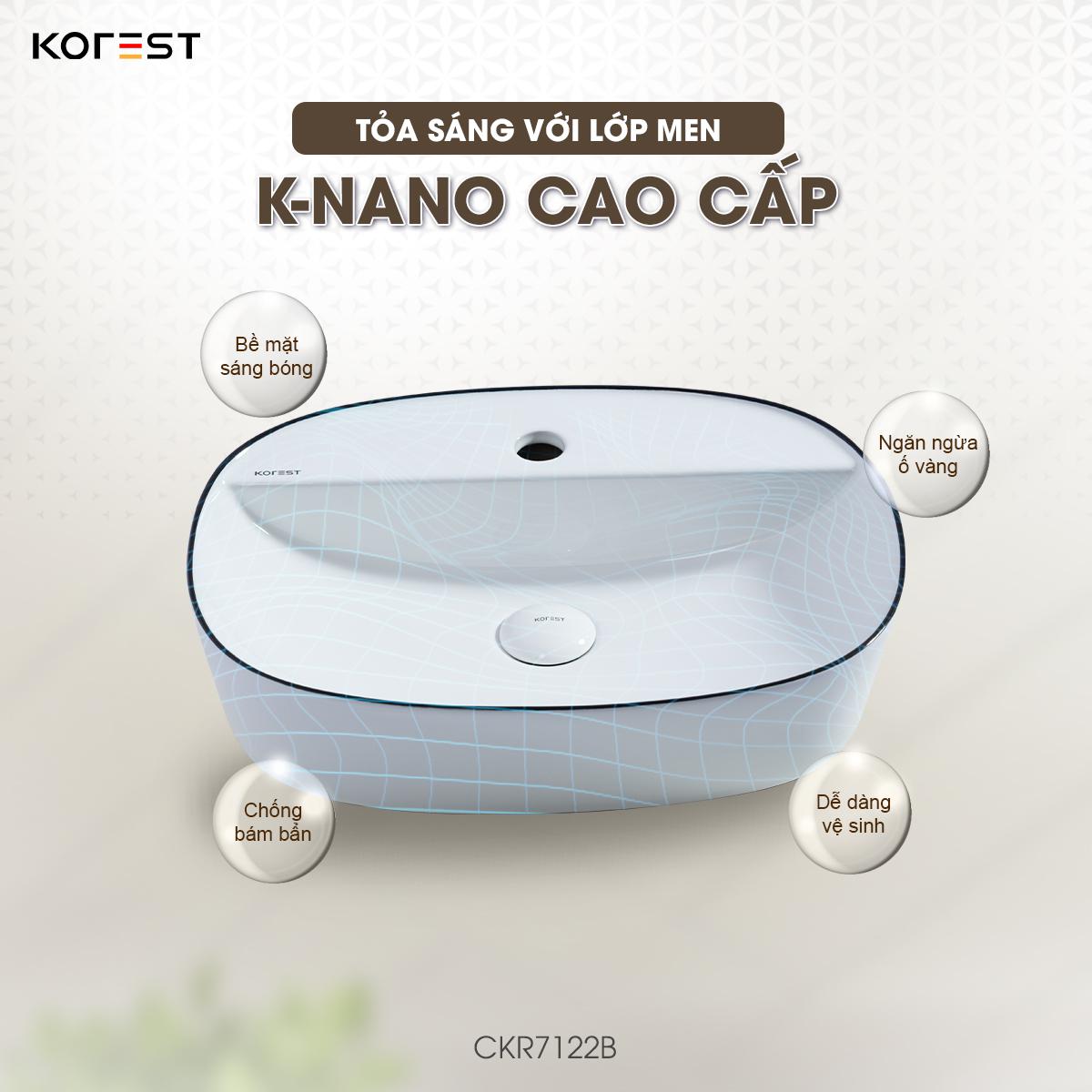 Được chế tác từ sứ nguyên khối cao cấp, nung ở 1280°C, CKR7122B sở hữu kết cấu bền chắc, hạn chế nứt vỡ và chống thấm nước hiệu quả. Lớp men K-Nano kháng khuẩn độc quyền phủ lên bề mặt như một “tấm áo sáng gương” – vừa chống ố vàng, vừa ngăn bám bẩn, giúp chậu luôn giữ được sự tinh khôi qua thời gian, chỉ cần một cái chạm nhẹ là sáng bóng trở lại.