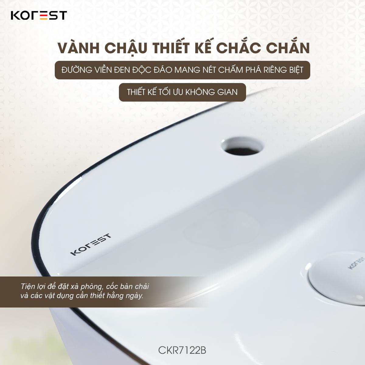 Tựa như một nét chấm phá đầy cảm hứng trong không gian sống hiện đại, CKR7122B mang đến vẻ đẹp khác biệt với thiết kế đơn giản mà ấn tượng. Đường viền đen sắc sảo ôm lấy vành chậu trắng tinh khôi như đường kẻ nhấn nhá trong một bức tranh tối giản, tạo nên sự hài hòa giữa thanh lịch và cá tính. Vành chậu mở rộng vừa là điểm nhấn, vừa khéo léo biến thành kệ để vật dụng nhỏ, giúp tối ưu diện tích và tăng tính tiện dụng.