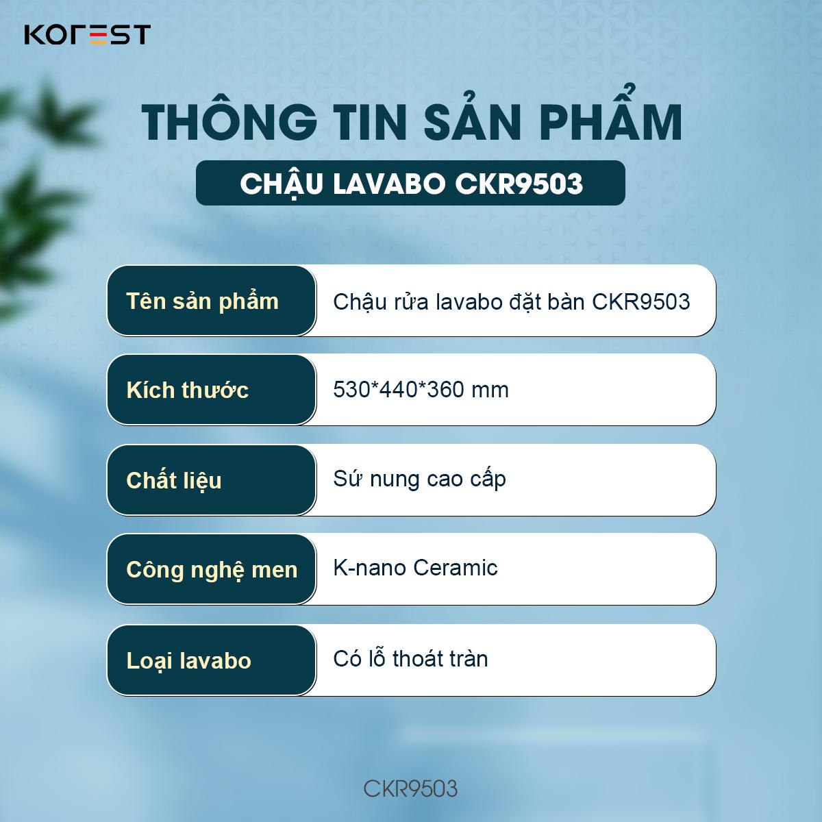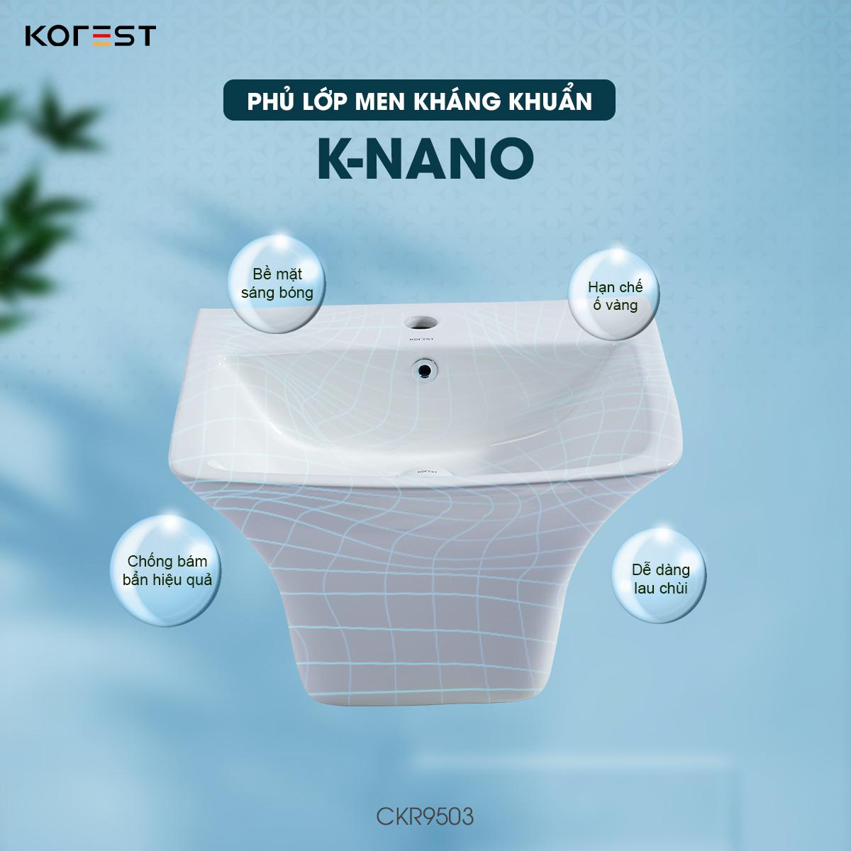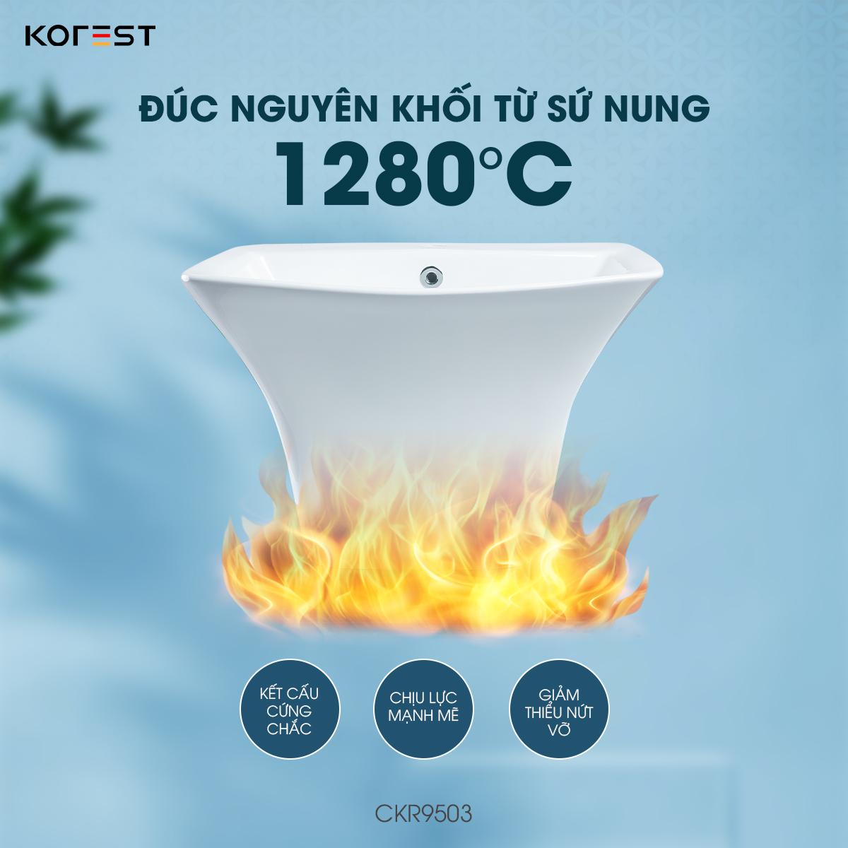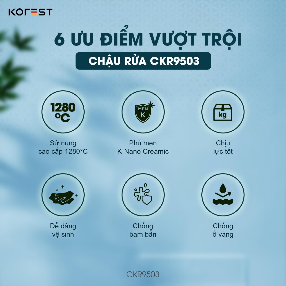 Được chế tác từ sứ cao cấp và nung ở nhiệt độ 1280°C, CKR9503 sở hữu độ bền vượt trội, chịu lực tốt và hạn chế nứt vỡ. Bề mặt phủ men K-Nano kháng khuẩn độc quyền mang đến khả năng chống ố vàng, ngăn bám bẩn và luôn sáng bóng như mới.