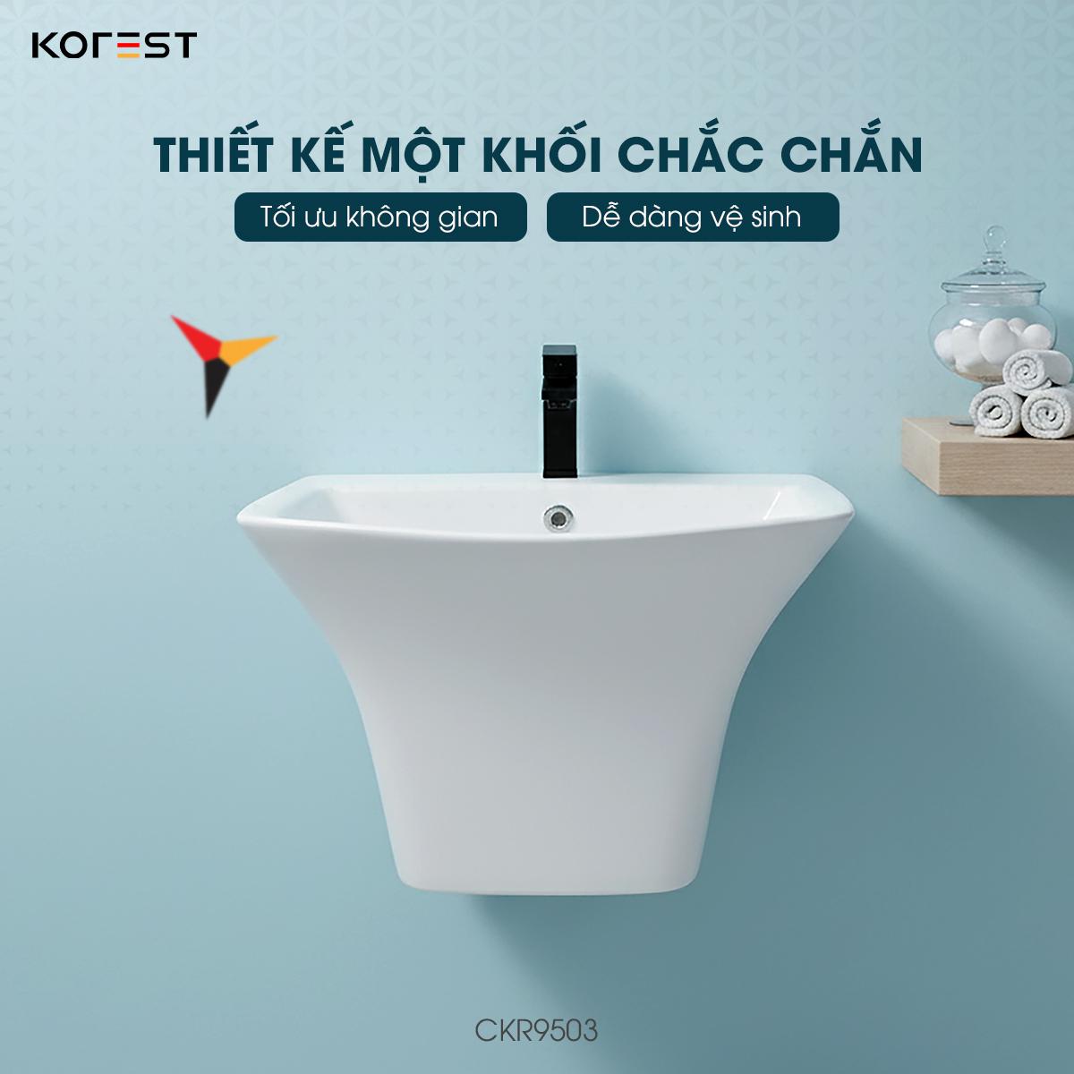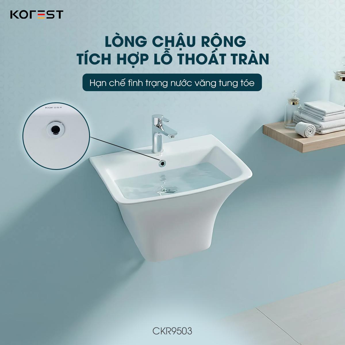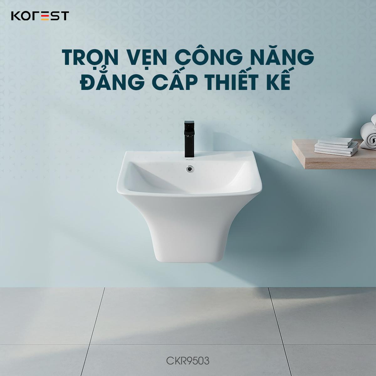 CKR9503 gây ấn tượng với thiết kế liền khối sang trọng, vừa khéo léo che gọn hệ thống đường ống kỹ thuật, vừa mang đến sự tinh tế và gọn gàng cho không gian. Với kích thước 530 × 440 × 360 mm, sản phẩm dễ dàng phù hợp với nhiều diện tích, đặc biệt lý tưởng cho phòng tắm gia đình, khách sạn hay căn hộ cao cấp.